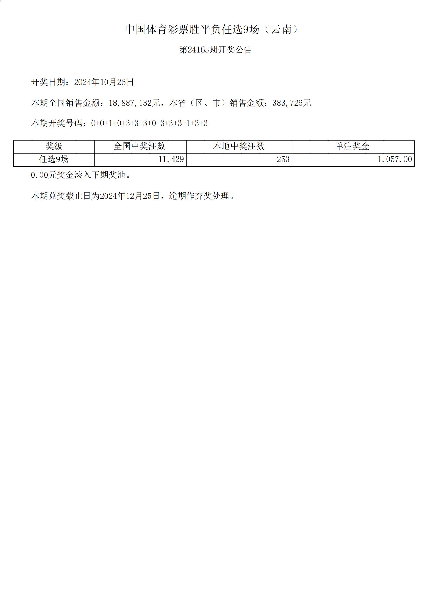 足球胜平负任选9场-24165期开奖公告