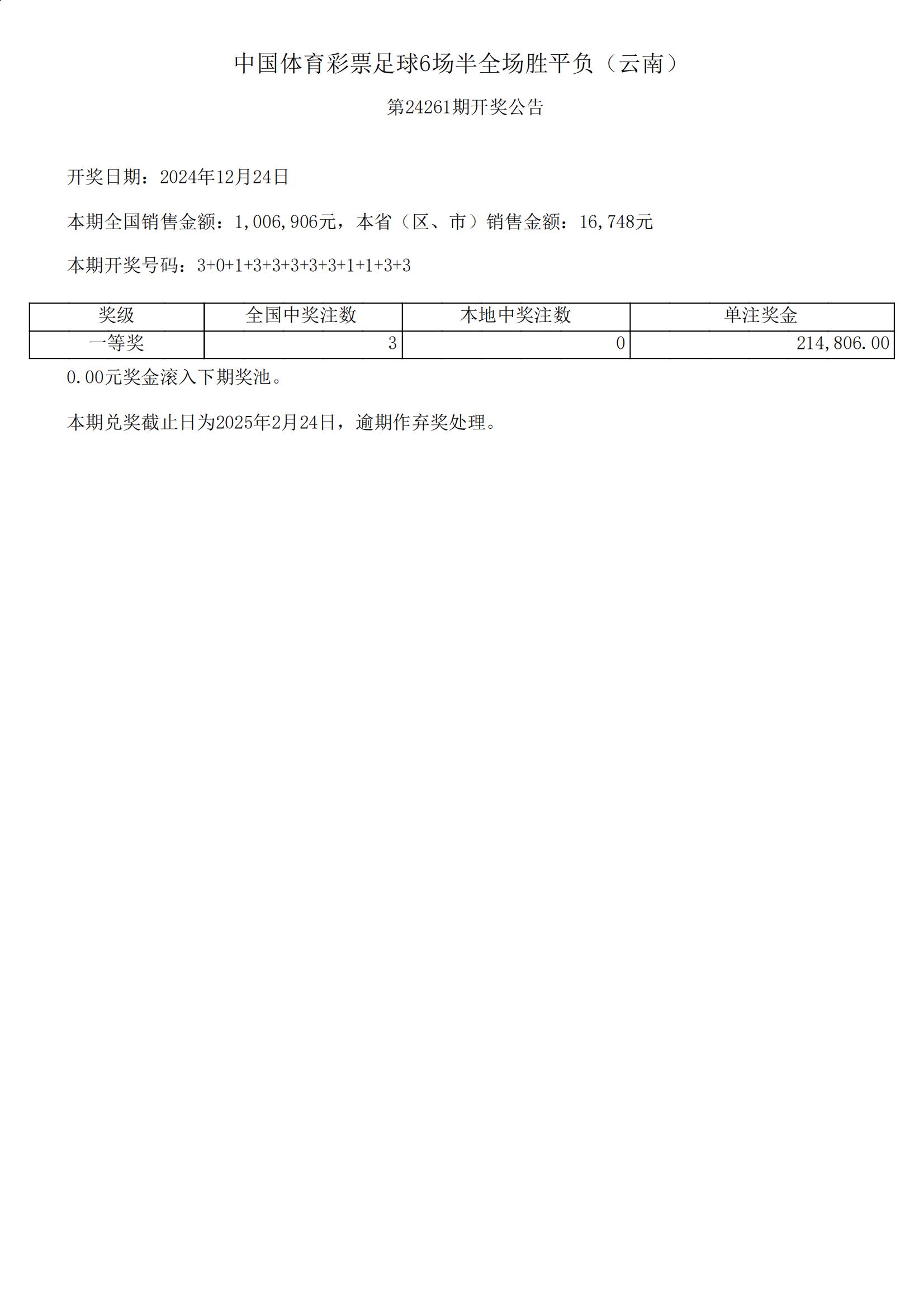 足球6场半全场胜平负-24261开奖公告