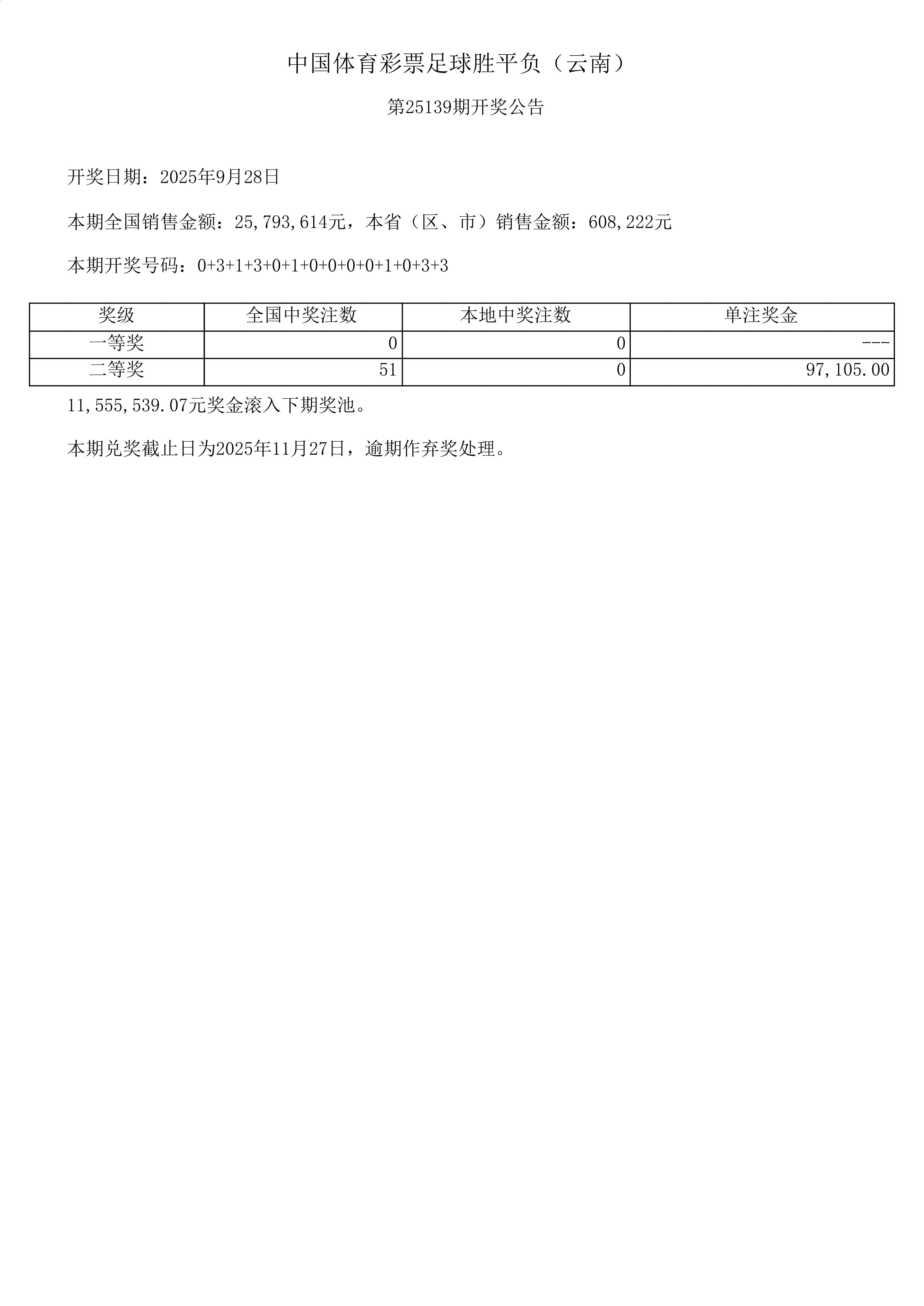 足球胜平负-25139期开奖公告
