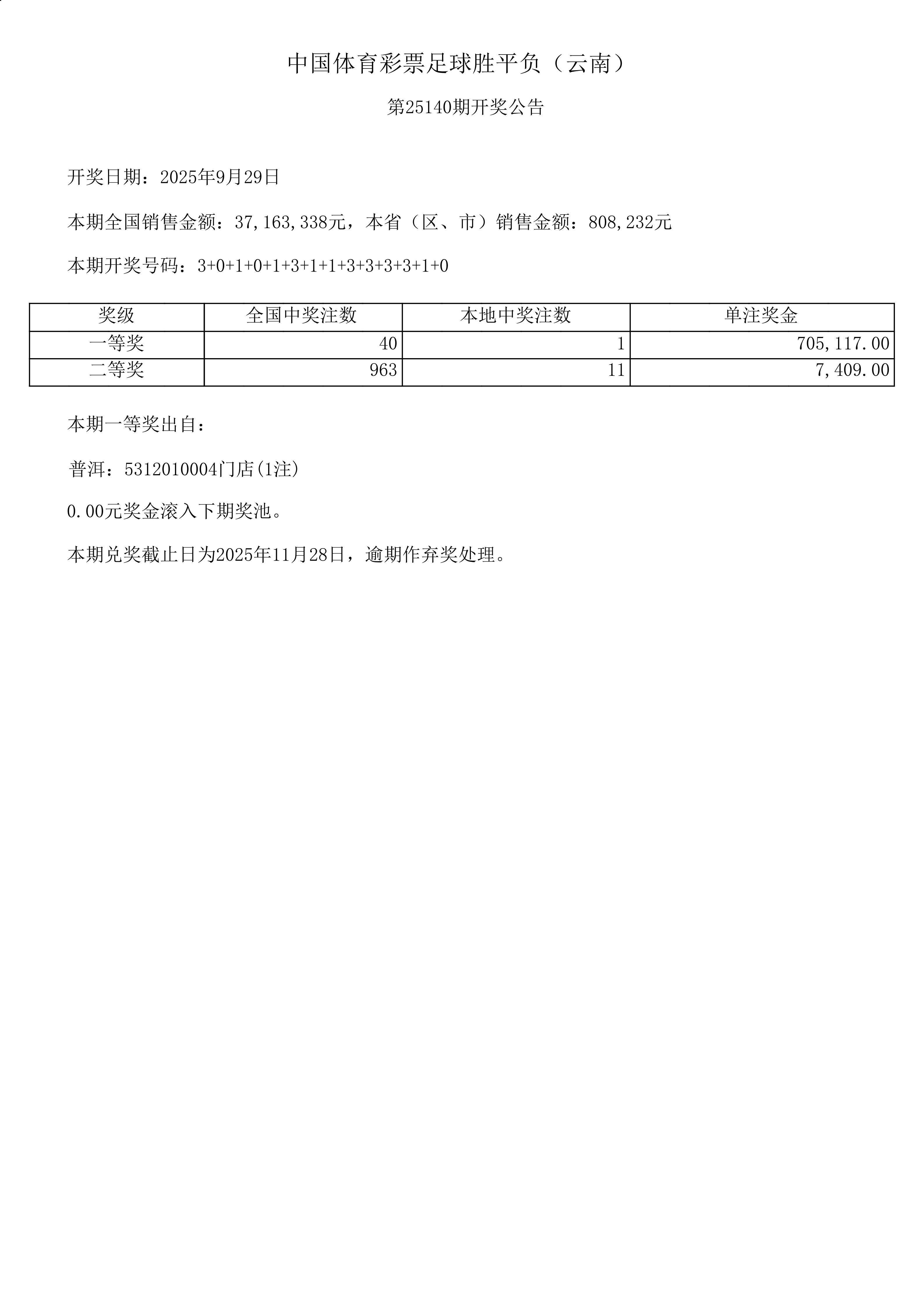 足球胜平负-25140期开奖公告