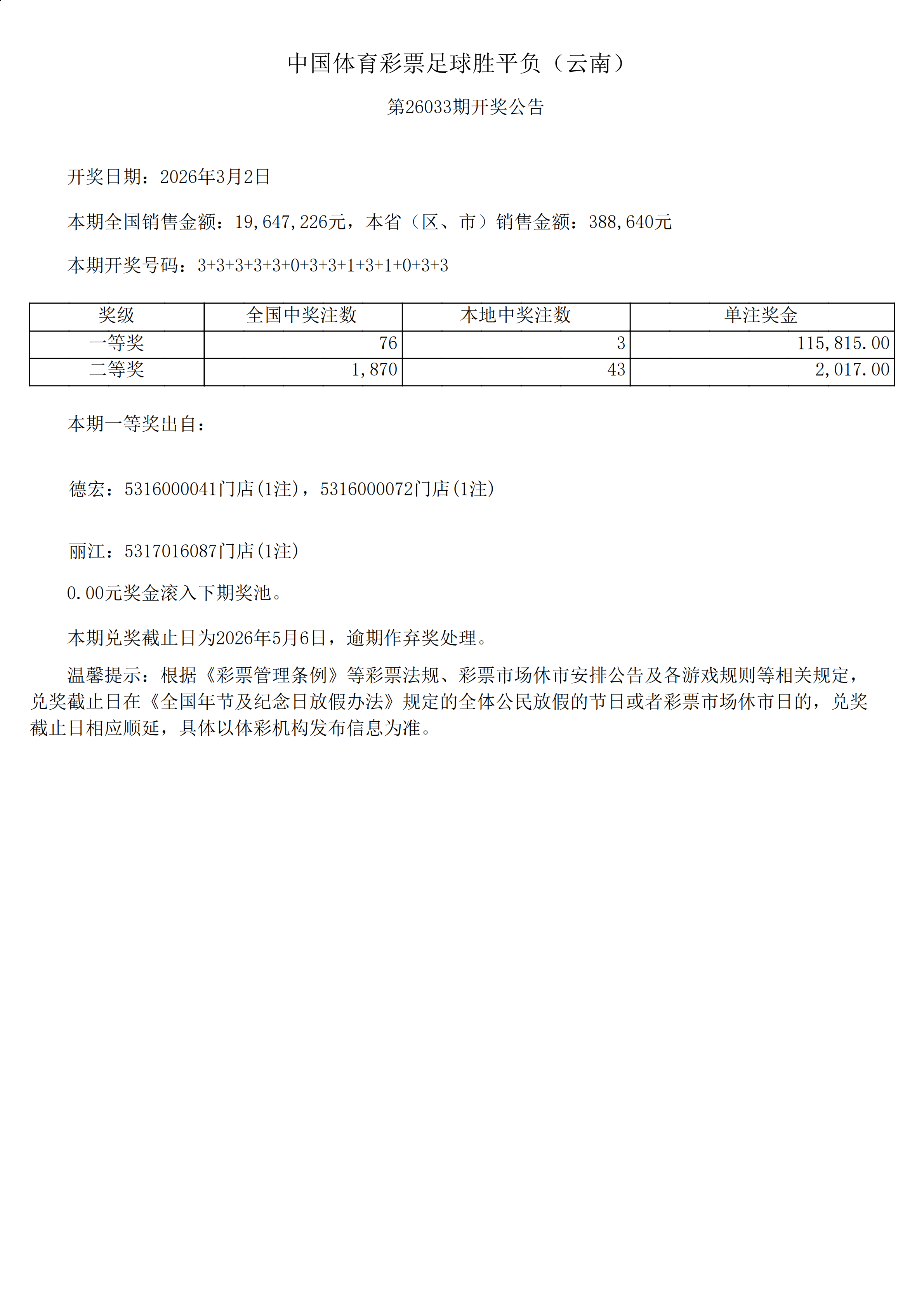 足球胜平负-26033期开奖公告