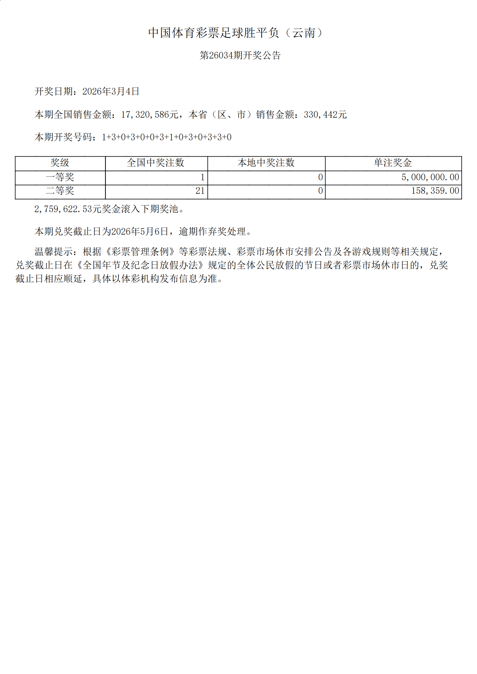 中国体育彩票温馨提示:购彩有节制,请理性投注!未满18周岁的未成年人不得购买彩票及兑奖!