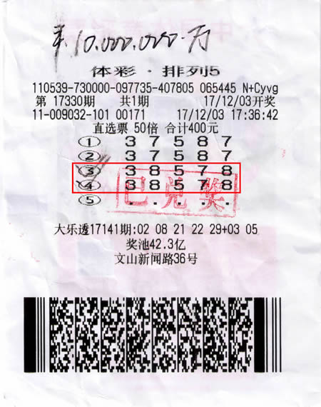 2020年云南体彩排列5中奖情况统计