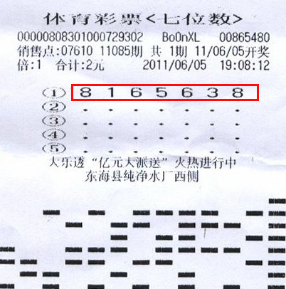 据了解,王先生也是老彩民了,早些年他并不是只买这一注彩号,通常是十块二十块的随机打上几注。或许是对这种投注乏味了,王先生就想着换一种投注方式。大约在五年前的一天,他突然对自己投注中的一注彩号,也就是现在的这注中奖号——8165638十分有“感觉”,于是把这种彩号挑出来单独投注,渐渐的他就养成每期只投1注彩号的习惯,无论是中不中奖,他都没有更换,就这样一直坚持了五年。
