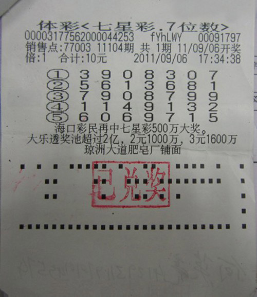 海口 七星彩500万得主现身