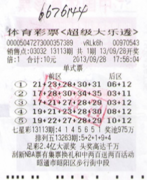 中奖彩票票样9月28日晚,体育彩票超级大乐透玩法第13113期开奖。本期开奖延续了此前大乐透火爆的出奖势头,再度为全国彩民奉上4注头奖,云南昭通彩民摘得一注头奖,一注五等奖以及两注八等奖,共计获中奖金