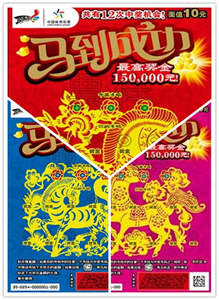 今年,“顶呱刮”带着“马到成功”和“吉祥如意”向一直热爱支持,即开型体育彩票的彩民们拜年了,即将于1月24日问世,面值20元的“吉祥如意”票面设计精美典雅,金黄的底色,鲜艳的红牡丹,象征着财富、富贵和运气。一款好游戏最重要是,给彩民带去欢乐的同时,送上新年大红包,“吉祥如意”最高奖金100万元,共有20次中奖机会,中奖率高达32.93%;“马到成功”是继“金蛇添财”、“锦虎送福”、“玉兔送财”及“团龙献瑞”等,又一款顶呱刮系列生肖,其寓意了“马到成功”的吉祥含义,该票面值10元,共设9个奖级,最高奖金15万元,有12次中奖机会,相信无论是钟情于“顶呱刮”,还是偶尔参与,只要加入到即开型体育彩票的行列中,总有一份惊喜等着你。
