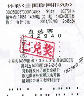 一张失而复得的“排列五”头奖彩票