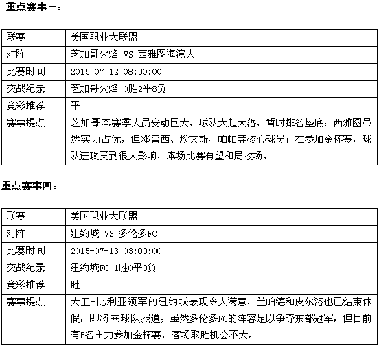 竞彩周末重点推荐:美职“撞车”金杯赛