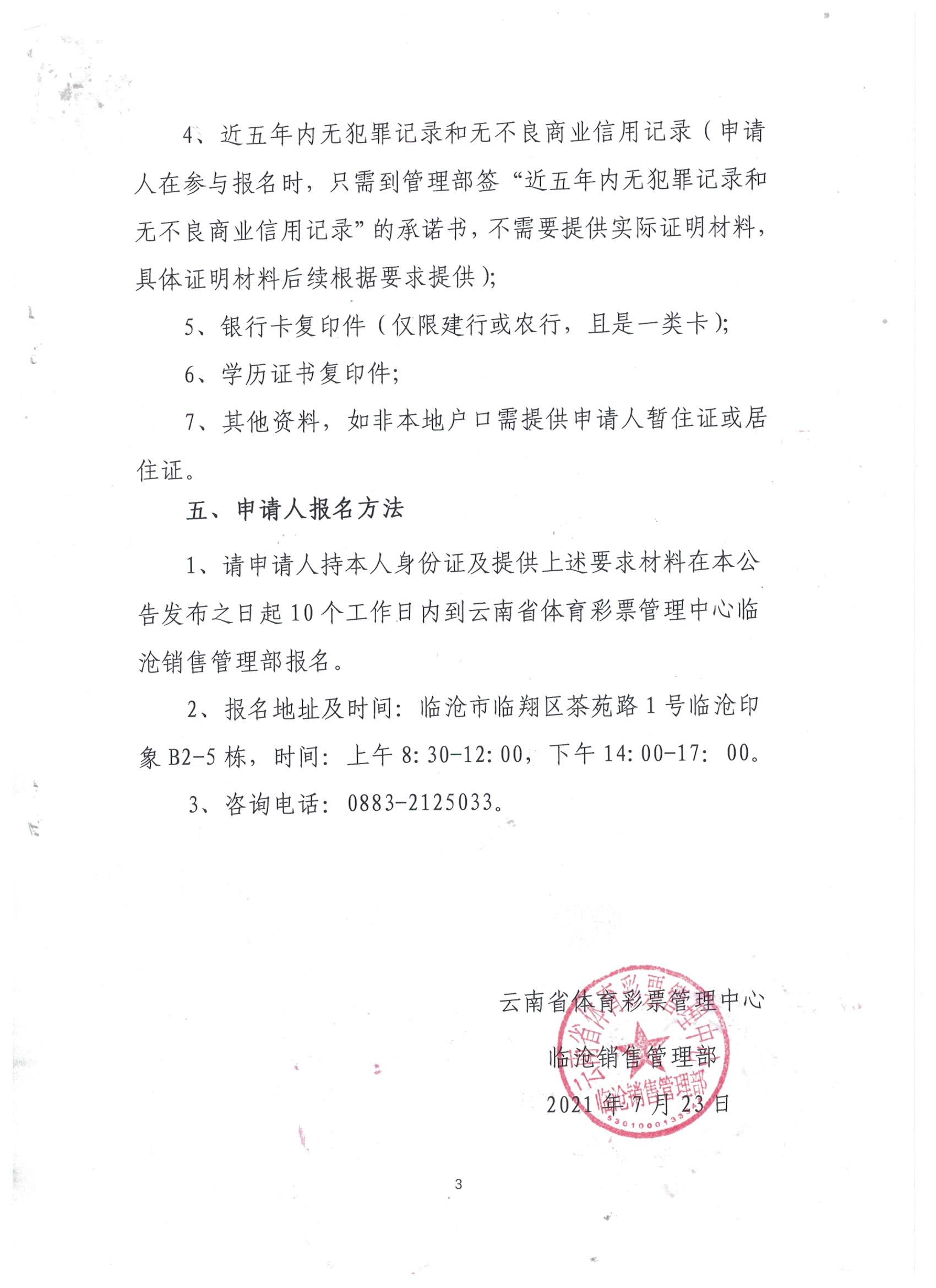 临沧销售管理部关于体育彩票代销者的邀约公告
