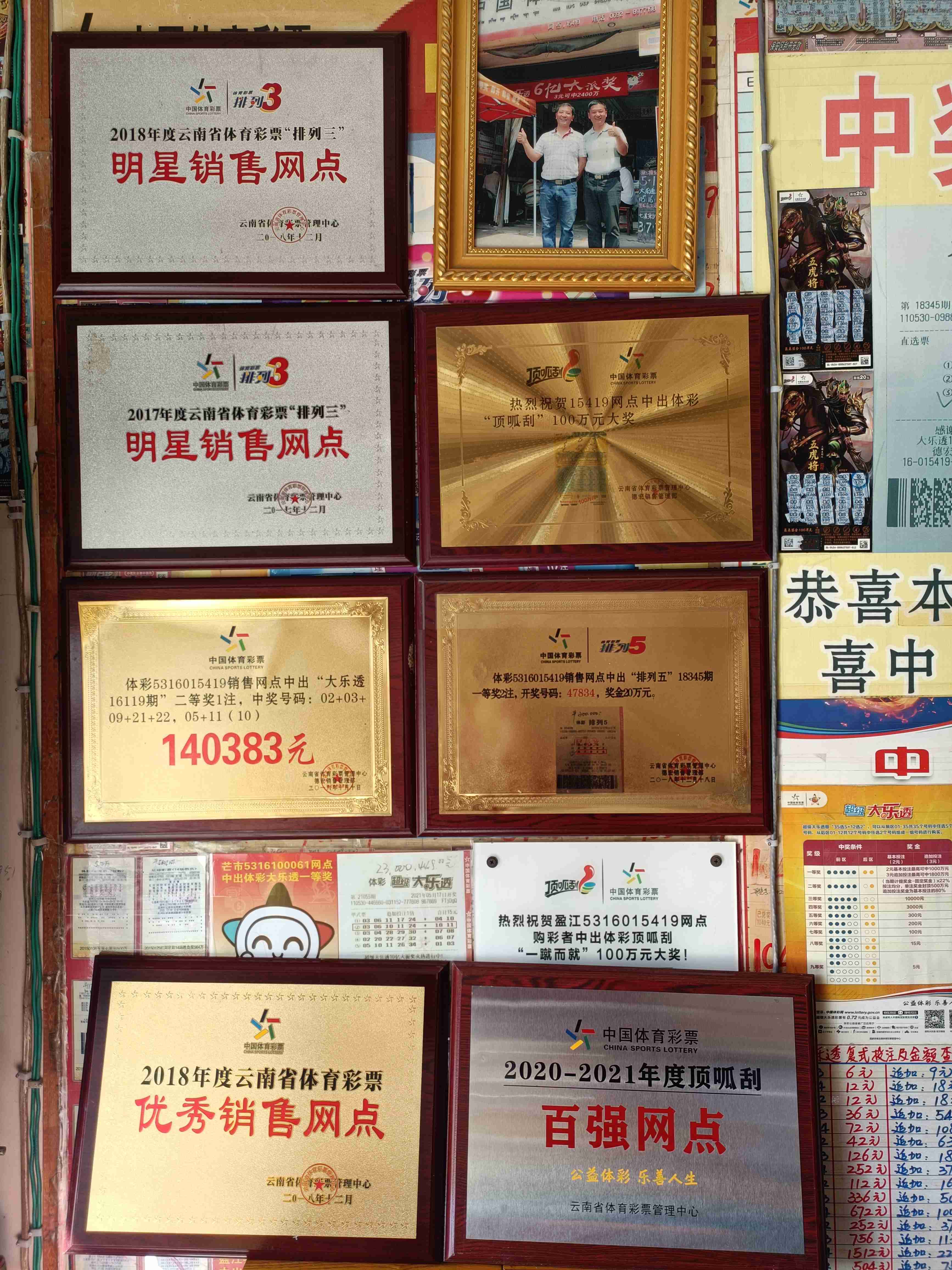 5316015419网点在2013年度、2014年度、2016年度均获得“优秀销售网点”称号;2016年度、2017年度、2018年度连续3年获得“排列三”明星销售网点称号;获得2012年度“即开型陈列展示示范网点”称号;获得2014年度“最美销售网点”称号;获得2016年度网点基础建设、即开陈列展示“最美销售网点”称号;获得2017年超级大乐透5亿大派奖陈列展示最佳网点称号;获得2020-2021年度顶呱刮百强网点;2021年获得“体彩追梦人”提名奖。林品吉为这些荣誉而感到自豪,也为当初选择加入体彩这个大家庭而感到骄傲!