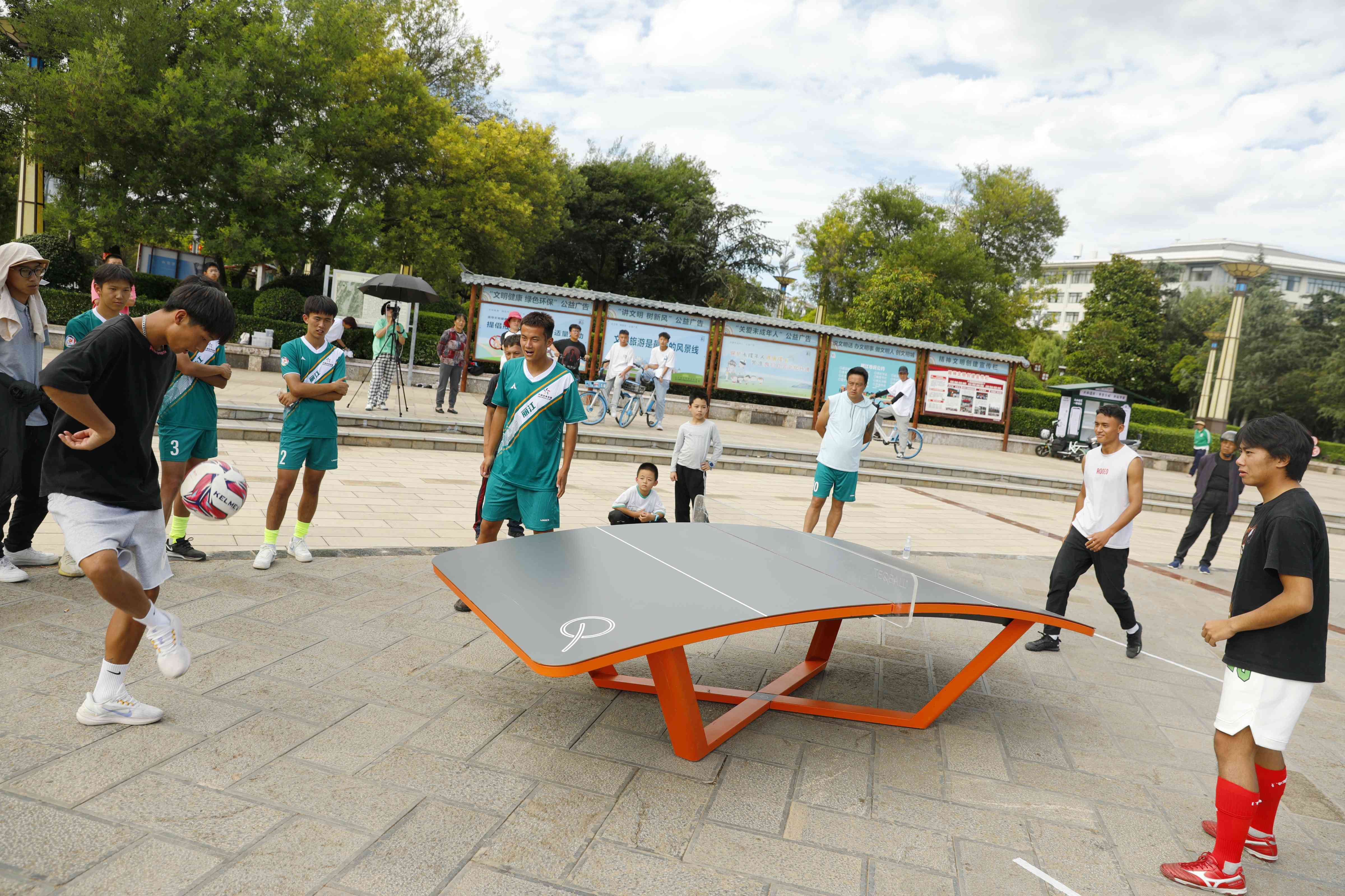 只是看球当然不够,场外摆放的“台克球”则是为未能上场的球迷们提供了施展球技的舞台。这个集足球技术、乒乓球规则与乒乓设备于一体的新兴趣味项目,是本届“竞彩梦想杯”专为运动爱好者们设置的“福利”,别看规则简单,但对参与者的控球能力、反应速度等足球专项技术有一定的要求。在参与这一活动时,丽江足球爱好者扎实的足球基本功得到了充分的展现,精彩的对抗吸引了不少人围观,一同感受新兴运动的别样魅力。拿到“台克球”比赛冠军的球员,收获了“顶呱刮”即开彩票和体彩吉祥物“乐小星”作为奖励。