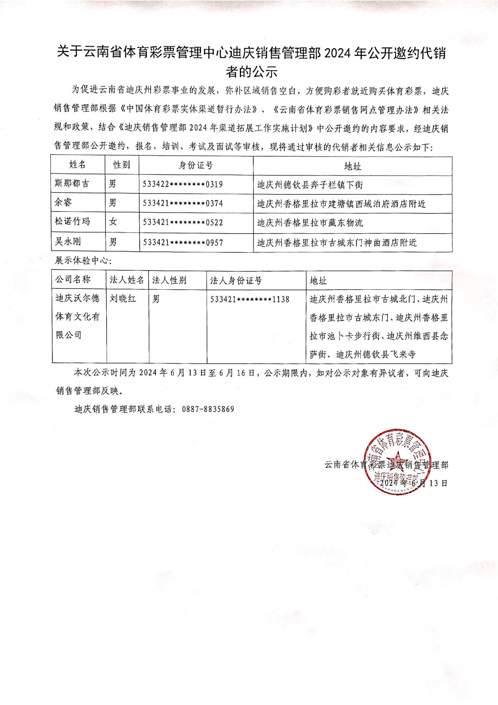 迪庆销售管理部体育彩票代销者公开邀约公示