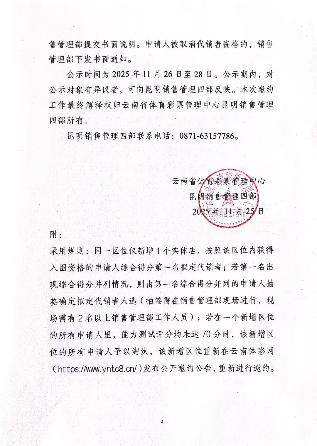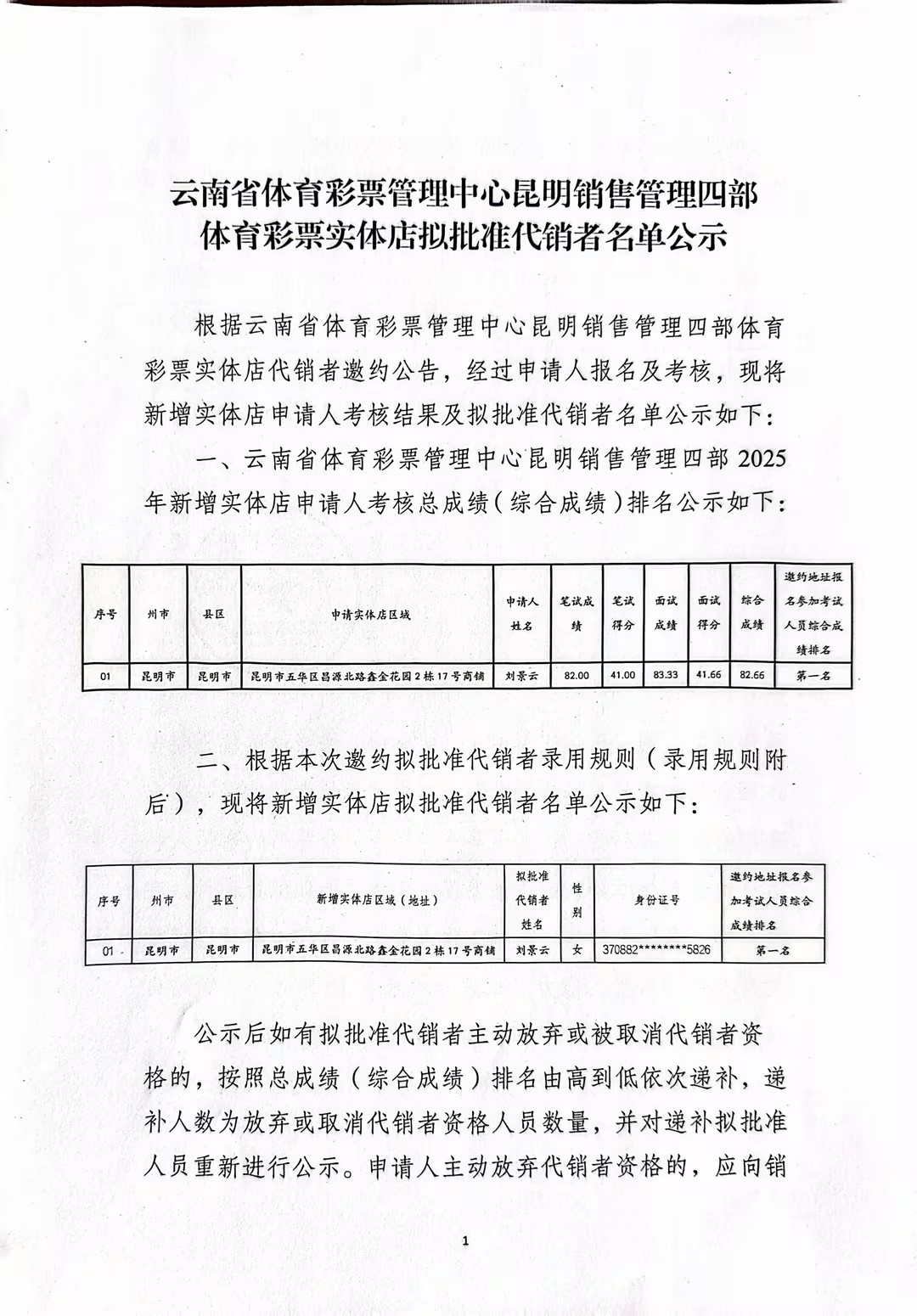 昆明销售管理四部体育彩票实体店拟批准代销者名单公示