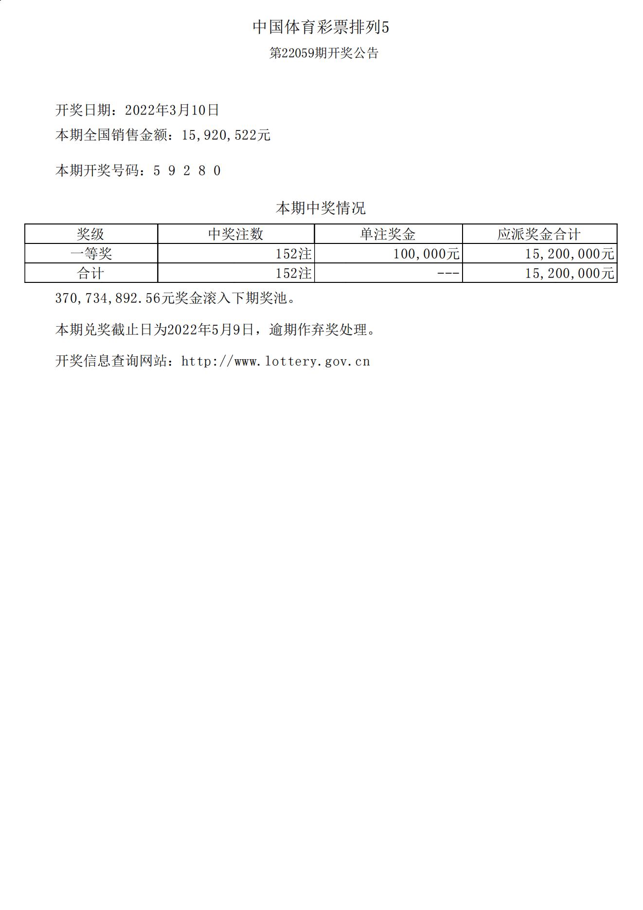 彩票以当期开奖次日起计60天为兑奖期,逾期不再予以兑奖,作弃奖处理。