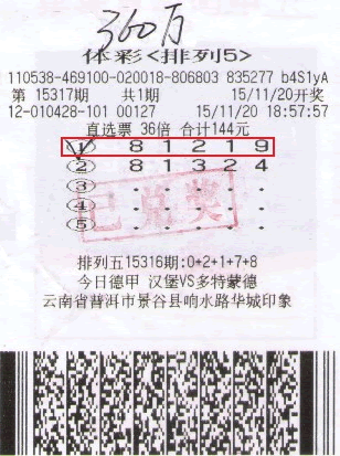 11月20日晚,排列5第15317期开出号码“8、1、2、1、9”,云南普洱一彩民独揽36注,总奖金高达360万元!据检索,这注大奖出自普洱市景谷县响水路。11月24日一早,中奖彩民张先生(化姓)来到云南省体彩中心领奖。