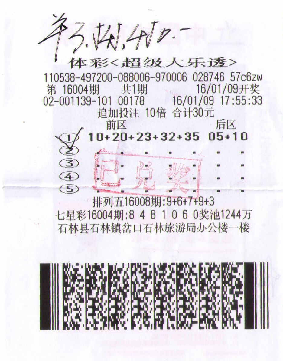 云南彩民领走大乐透超级二等奖