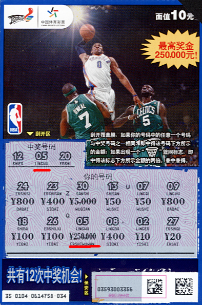 顶呱刮昭通威信25万大奖彩票: